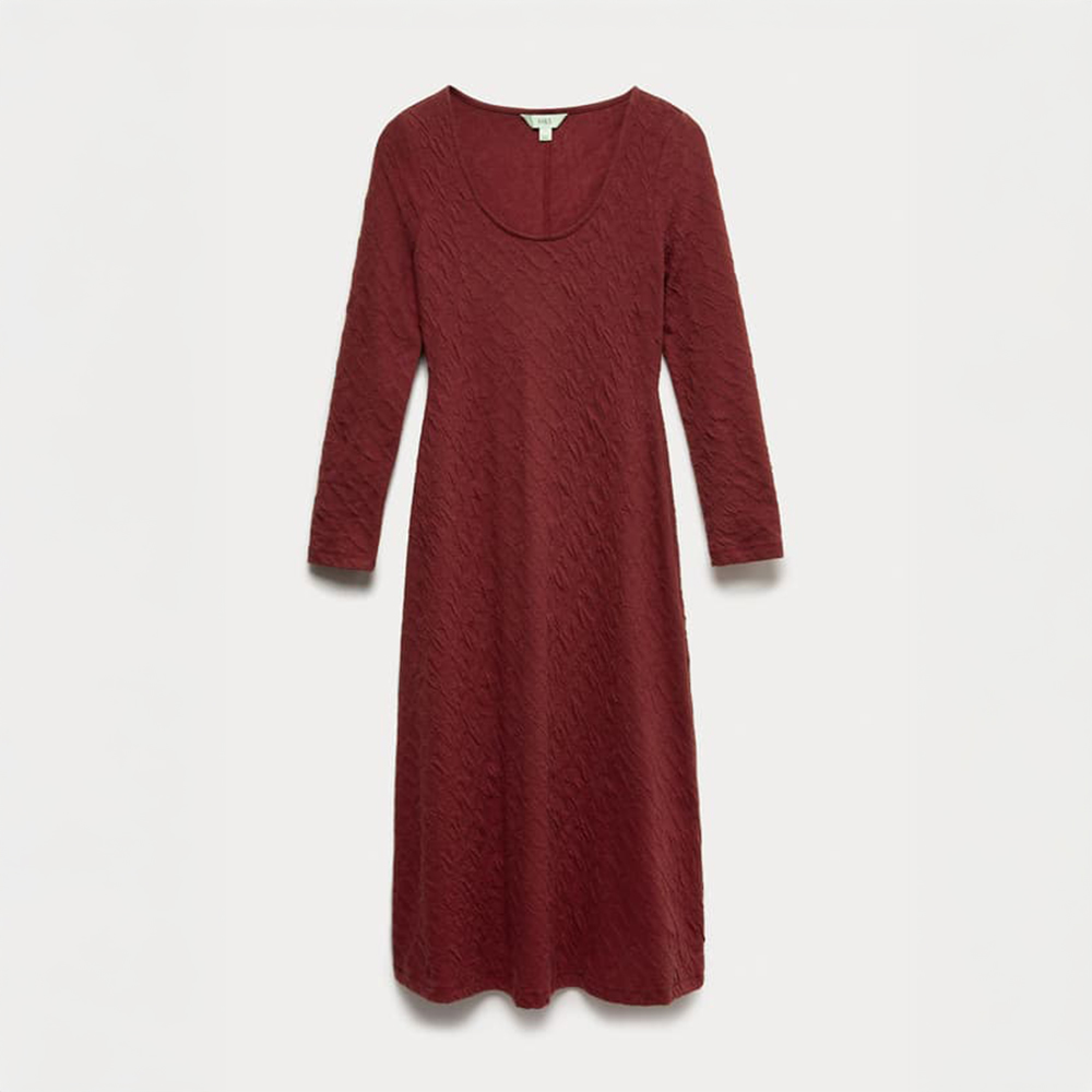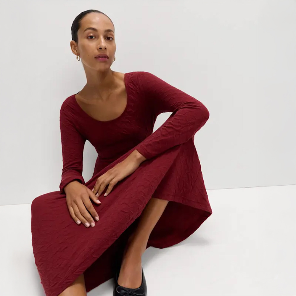 يُعد الفستان باللون العنابي اختيارًا سهلًا وأنيقًا لاستقبال الموسم الجديد. تصميم خفيف بما يكفي للأيام الدافئة، ومع ذلك يحتفظ بروحه الخريفية، ليكون قطعة مثالية لمختلف المناسبات دون أن تشعرك بالثقل.