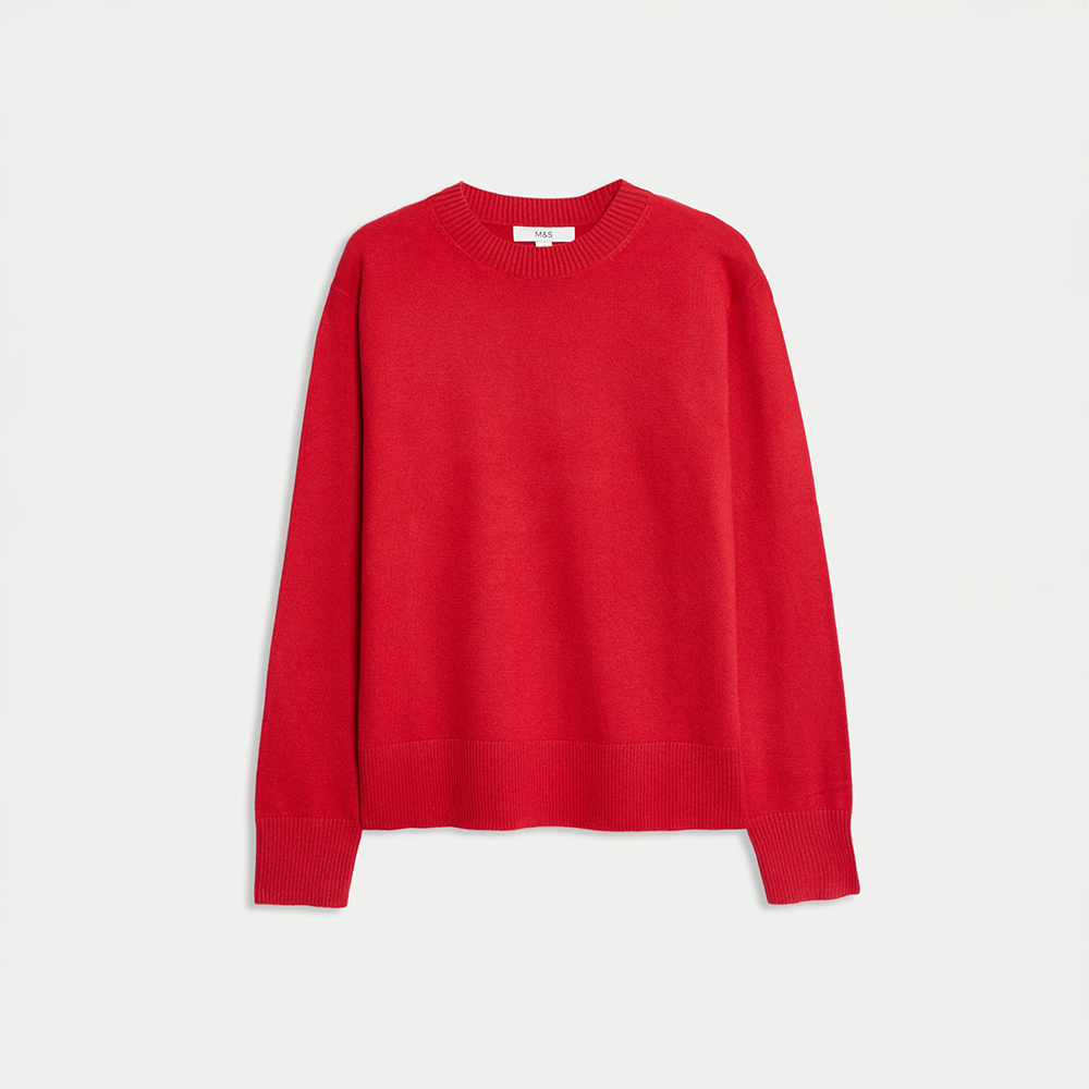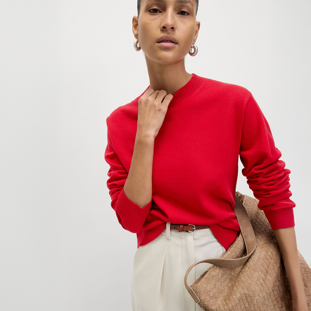 تهيمن الألوان الجريئة هذا الخريف على صيحات الموضة، ولا شيء يمنح إطلالتك حضورًا أقوى من اللون الأحمر. اختاري كنزة برقبة على شكل V بدرجة الأحمر البارز لتكون محور إطلالتك، ونسقيها مع ألوان محايدة أو جينز لإطلالة متوازنة. أسهل طريقة لإضفاء لمسة جريئة على مجموعتك الخريفية هي تنسيقها مع جينز بقصة مستقيمة أو تنورة ميدي لإطلالة أنيقة وبسيطة.