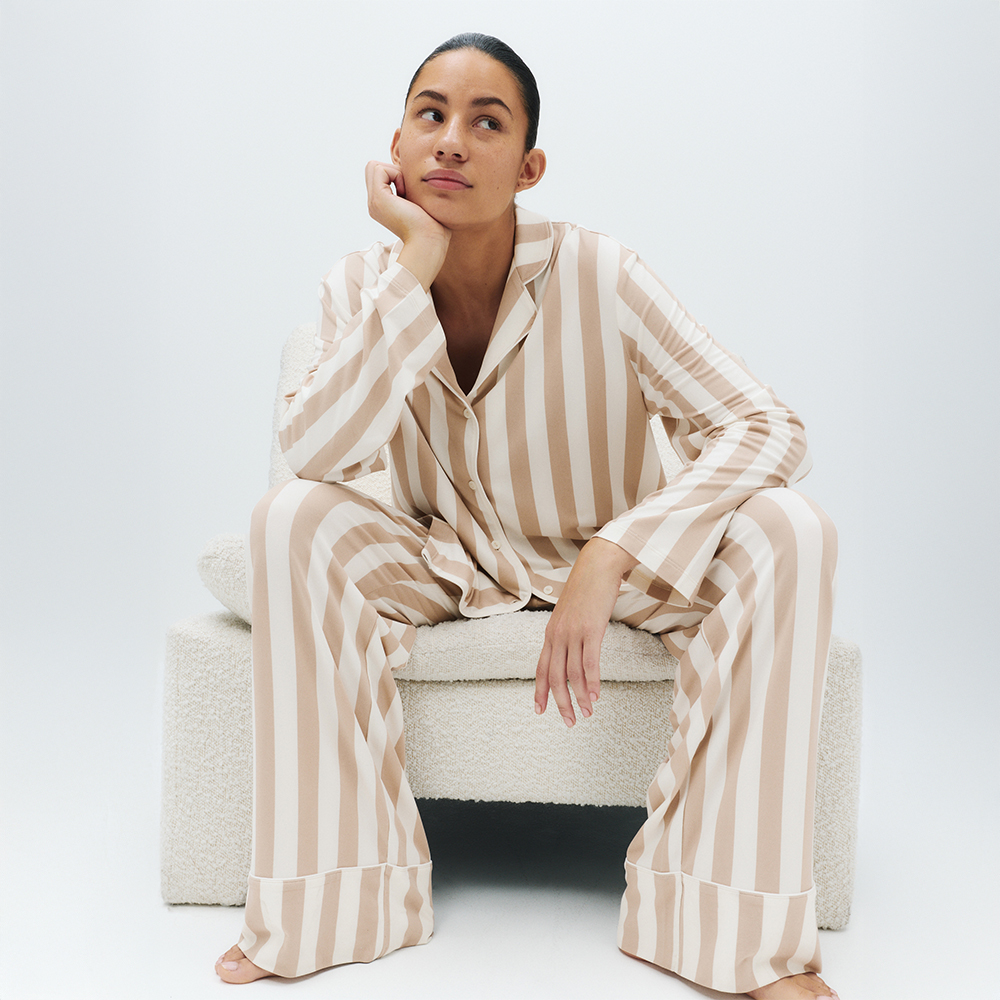 For comfortable yet stylish bedtimes, explore our sleepwear, night dress and pyjamas selection. You don’t get much more classic than a shirt-and-trouser women’s pyjama sets or airy cotton nightdress – ours come in block colours or feature statement prints. For something modern, look to loungewear combos of joggers and sweatshirts. And don’t forget a fleecy dressing gown and matching women slippers to complete the look.
